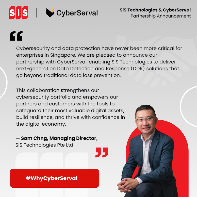 “Cybersecurity and data protection have never been more critical for enterprises in Singapore. We are pleased to announce our partnership with CyberServal, enabling SiS Technologies to deliver next-generation Data Detection and Response (DDR) solutions that go beyond traditional data loss prevention.